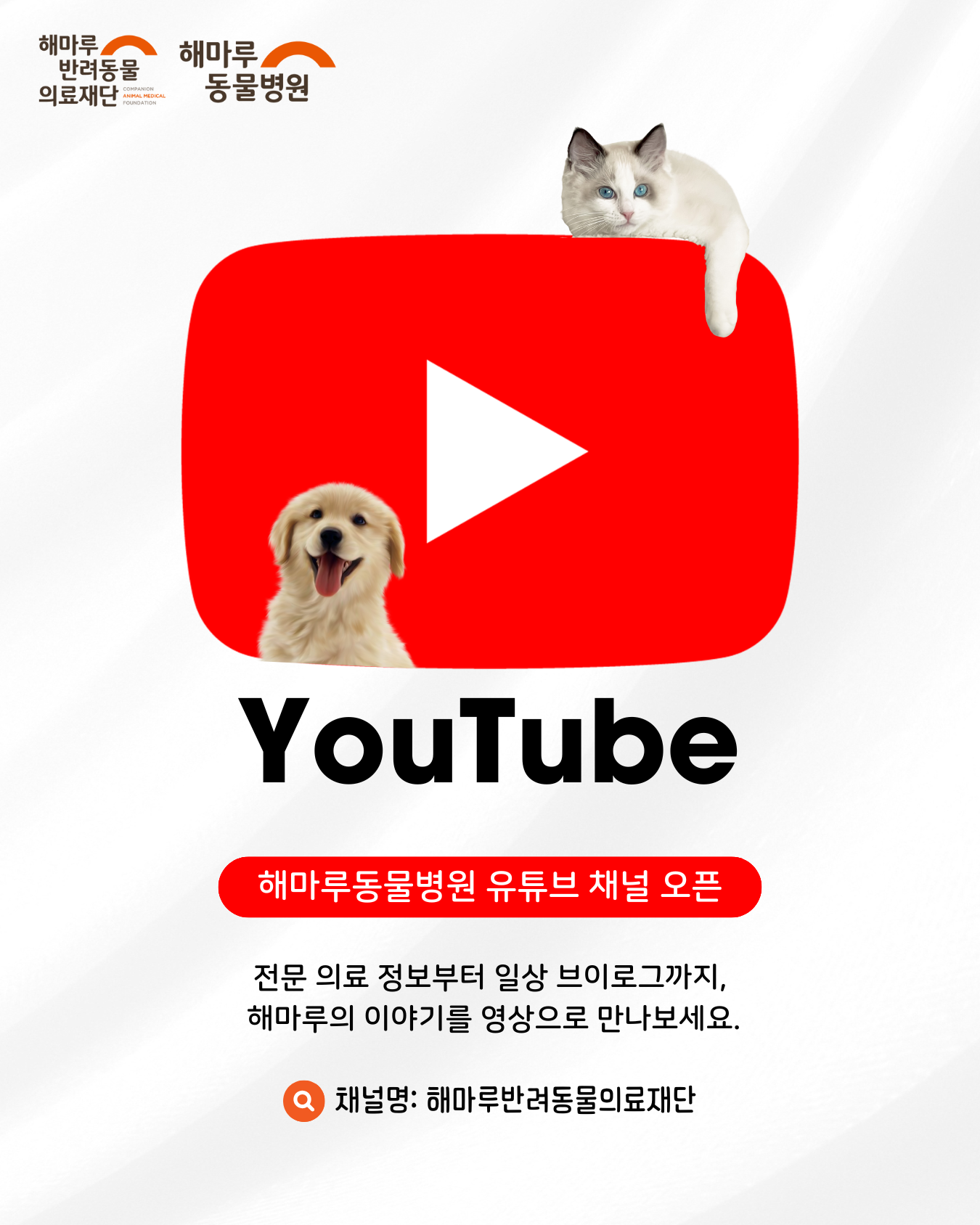해마루동물병원이 공식 유튜브 채널을 오픈했습니다!