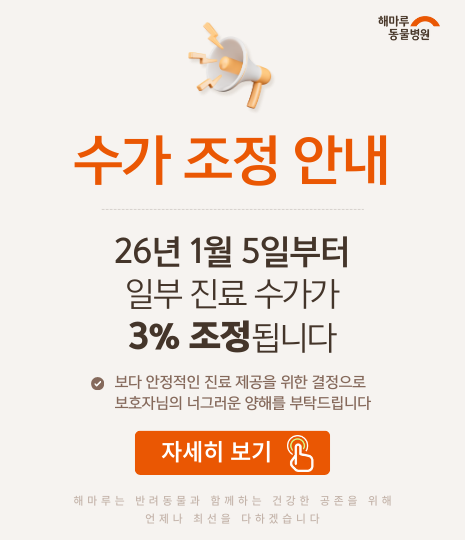 “25년간의 진료 철학, 국제 기준으로 증명되었습니다.”해마루동물병원이 AAHA-KVMA 인증을 획득했습니다!이는 단순한 성과를 넘어, 해마루가 추구해온 의료 철학과 시스템이 국제적 기준에서 인정받았다는 뜻입니다.☞ 김소현 이사장의 진심 어린 메시지를 영상으로 확인해보세요."국제 기준의 진료 품질, 그리고 해마루의 앞으로의 다짐을 전합니다."유튜브 링크 >> https://youtu.be/7Rus3qU3zsk▶ AAHA 인증이란 무엇인가요?AAHA는 북미 지역을 중심으로 1933년부터 운영되어 온, 세계에서 가장 권위 있는 동물병원 평가 기관입니다. 의료 서비스의 질, 환자 안전, 시설 관리, 팀워크, 윤리 기준에 이르기까지 900여 개 항목에 걸쳐 철저한 심사를 거칩니다.해마루는 900여 가지의 기준을 높은 점수로 모두 충족하며, 동물과 보호자를 위한 최상의 진료 환경과 의료 서비스를 제공하는 병원임을 공식적으로 인증받았습니다.▶ 왜 AAHA 인증이 중요한가요?AAHA 인증은 단지 외적인 평가에 그치지 않습니다.환자 중심의 진료, 보호자와의 신뢰, 그리고 의료진의 지속적인 교육과 발전을 통해 지속가능한 의료 가치와 생명 존중의 철학을 실현하는 것이 바로 해마루가 추구하는 길입니다.▶ 해마루가 지향하는 의료 가치우리는 ‘사람과 동물이 함께 건강한 사회’를 목표로,동물병원이 단순히 치료만을 제공하는 공간이 아닌,소통과 회복, 그리고 생명의 가치를 함께 나누는 공간이 되기를 바랍니다. 앞으로도 해마루는 AAHA 인증에 걸맞은 책임감을 가지고,전문성과 진정성을 갖춘 진료로 보호자 여러분의 신뢰에 보답하겠습니다.