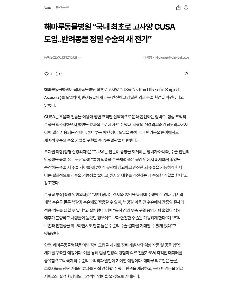 PREV [학술활동] 오지원 외과 과장, 'Advanced TPLO Hands-on Course (TPLO 핸즈온 고급과정)'에 강사로 참여 NEXT [보도기사] 해마루동물병원, 중증난치질환 웨비나 9탄 ‘호흡곤란’ 무료 웨비나 29일 개최 | 데일리벳